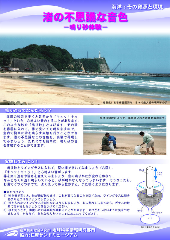 海底から採取した貴重な試料を展示しています. - 渚の不思議な音色-鳴り砂体験-